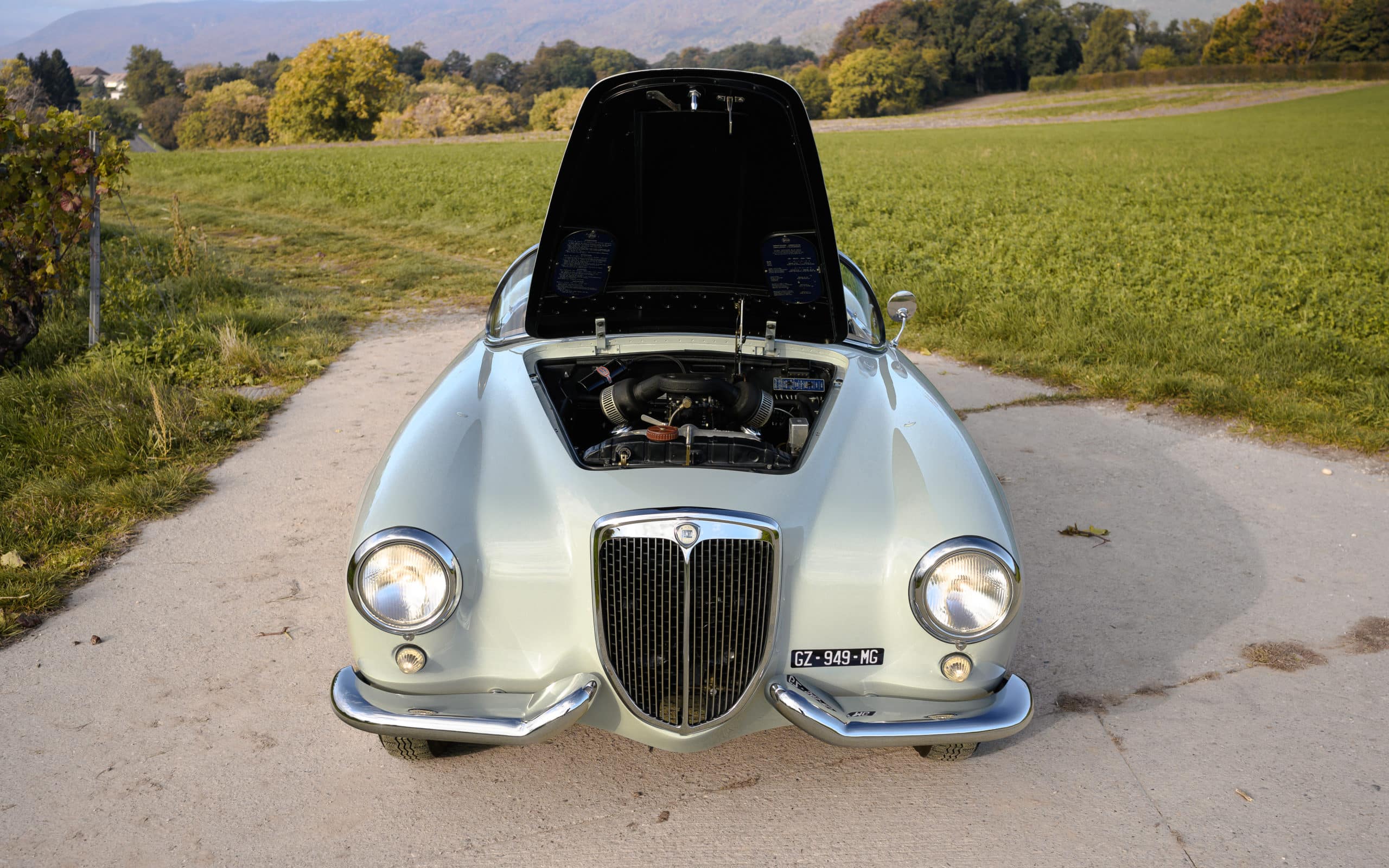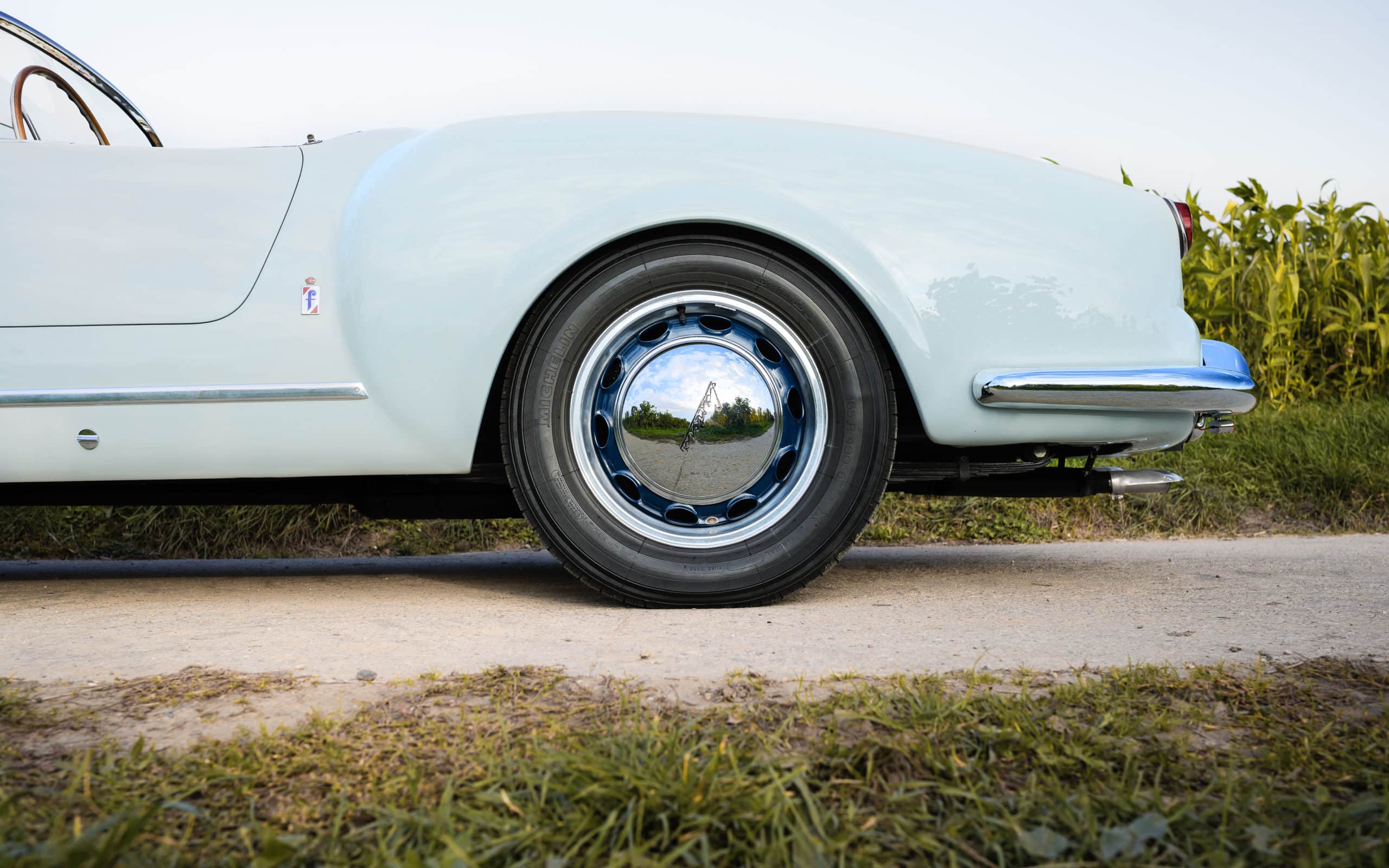 The Split Bumpers: Instead of a massive, heavy chrome bar, Pinin Farina gave the B24S elegant, split front bumpers. Enthusiasts affectionately call them “mustaches.” It gives the Lancia B24 an expression that says, “I am going to overtake you, and I am going to look devastatingly handsome while doing it.”