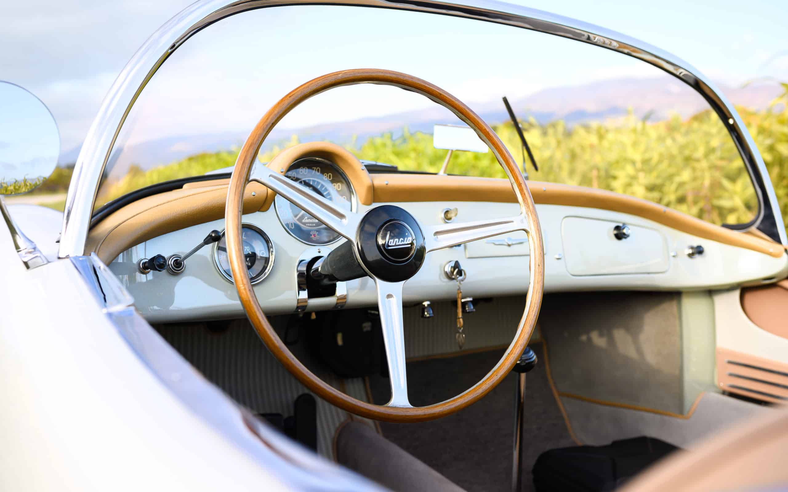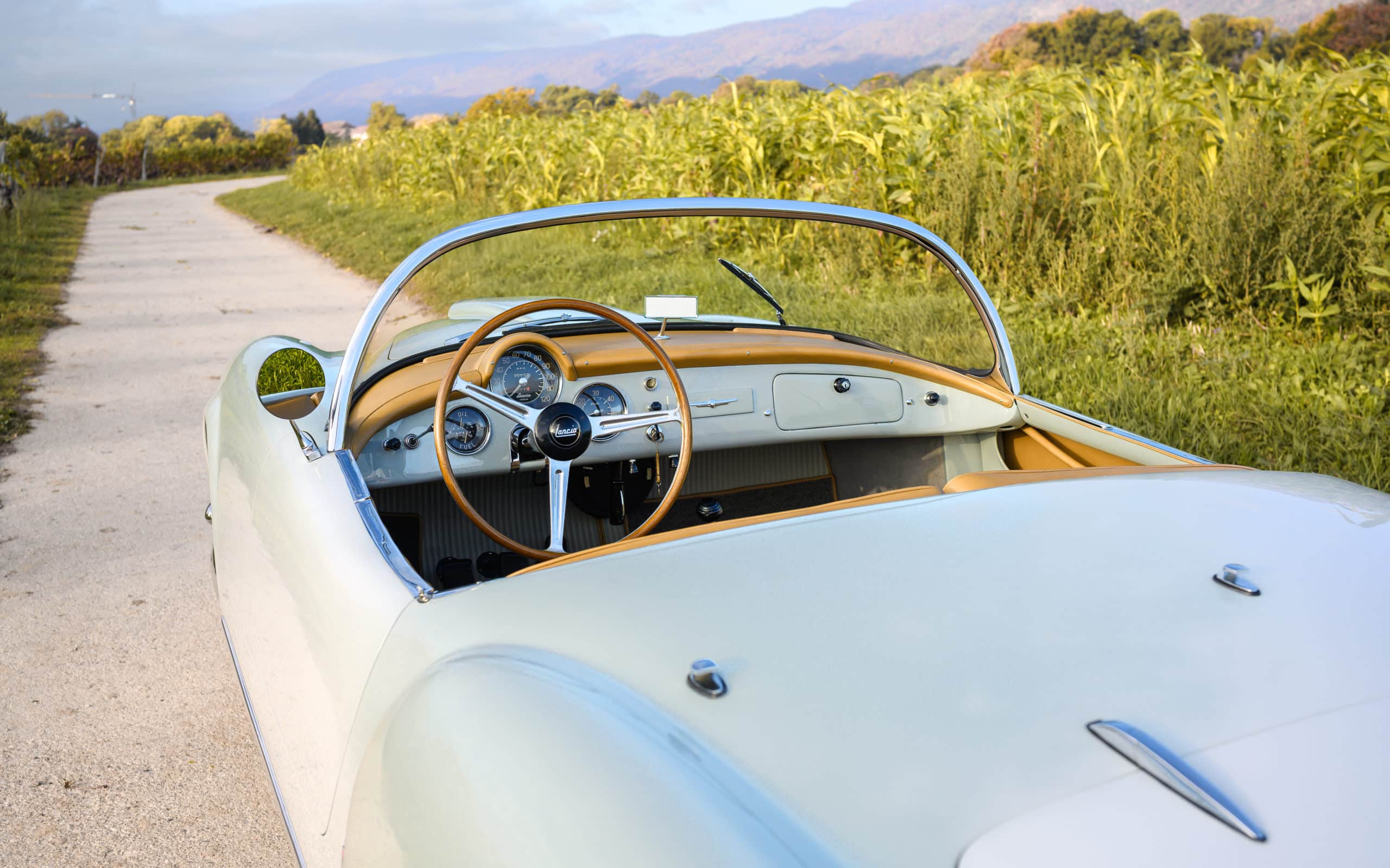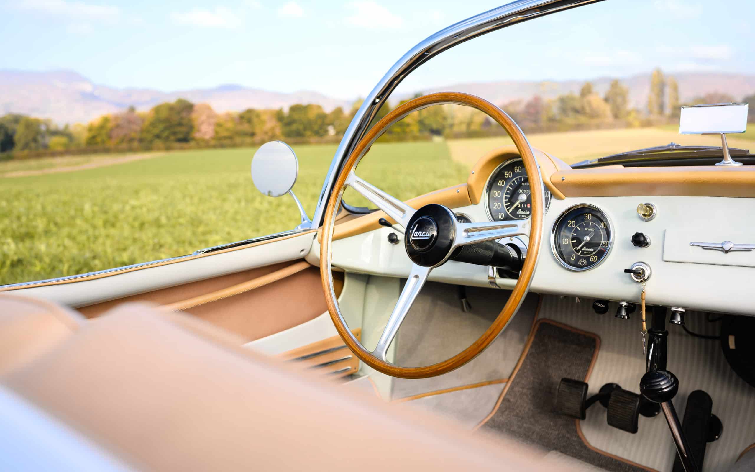 The Panoramic Windscreen: Look closely at the windscreen of a Lancia B24 S. It is not just a piece of glass. It’s a spectacular panoramic, wraparound visor that looks like it was stolen directly from a fighter jet. It provides unmatched visibility and makes the driver look like a 1950s astronaut.
